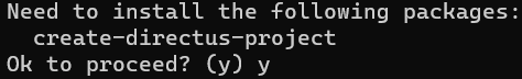 npm init directus-project <insert project name here>If this is your first time doing this, you’ll get a prompt like this: